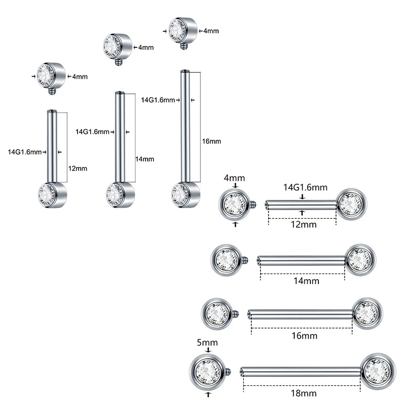 1/2Pcs Implant Grade Titanium Internally Threaded Nipple Barbell with CZ Set Ball Ends Women Nipple Piercing Body Jewelry