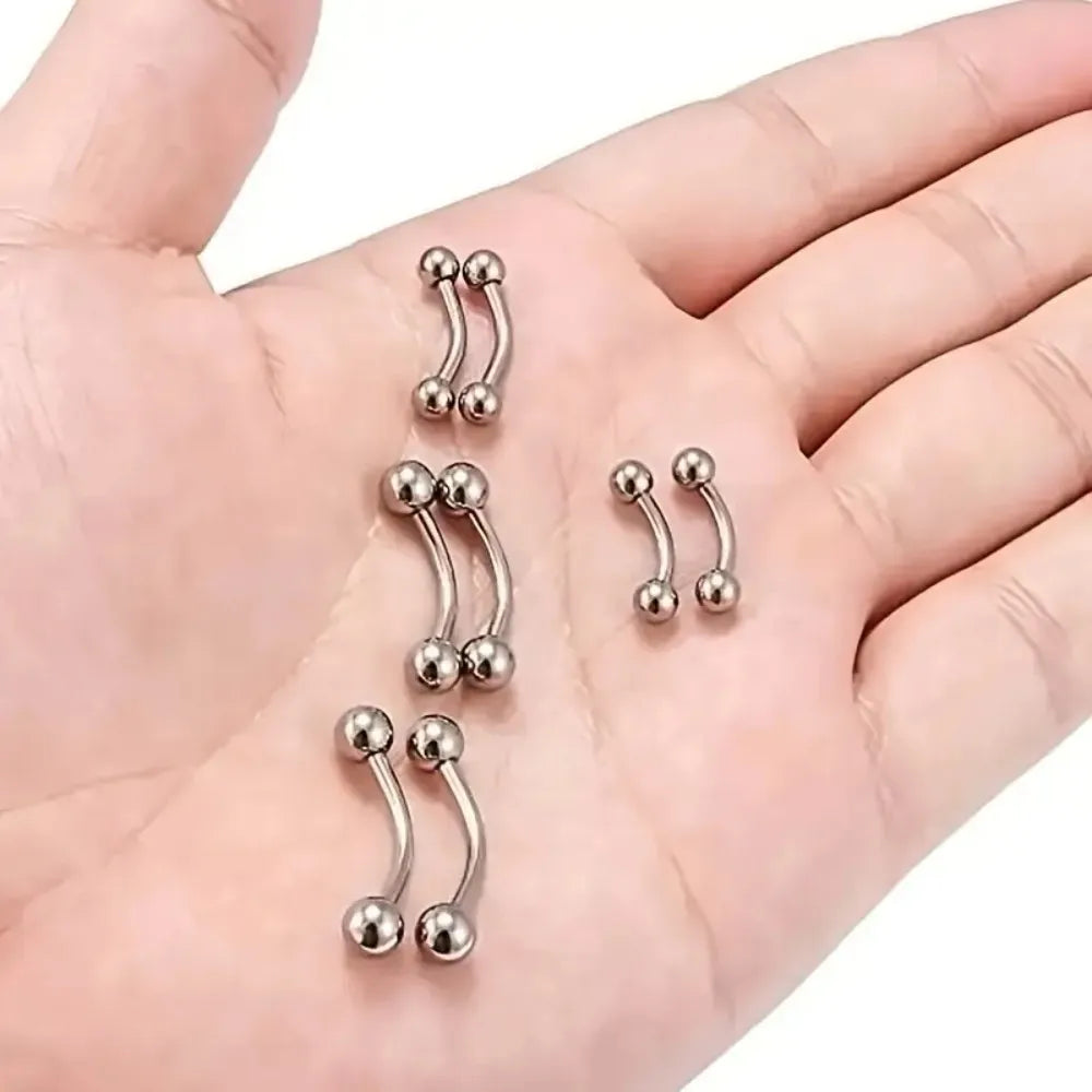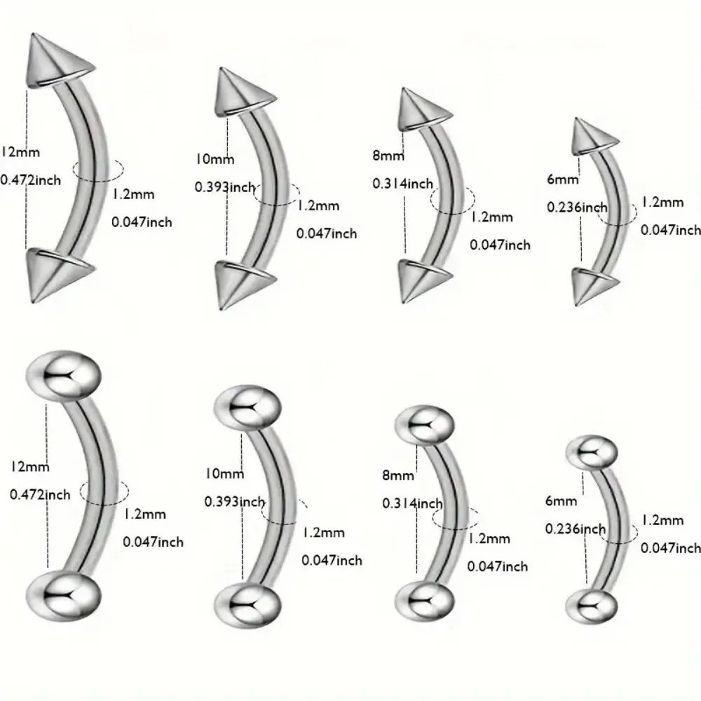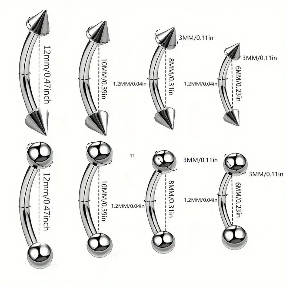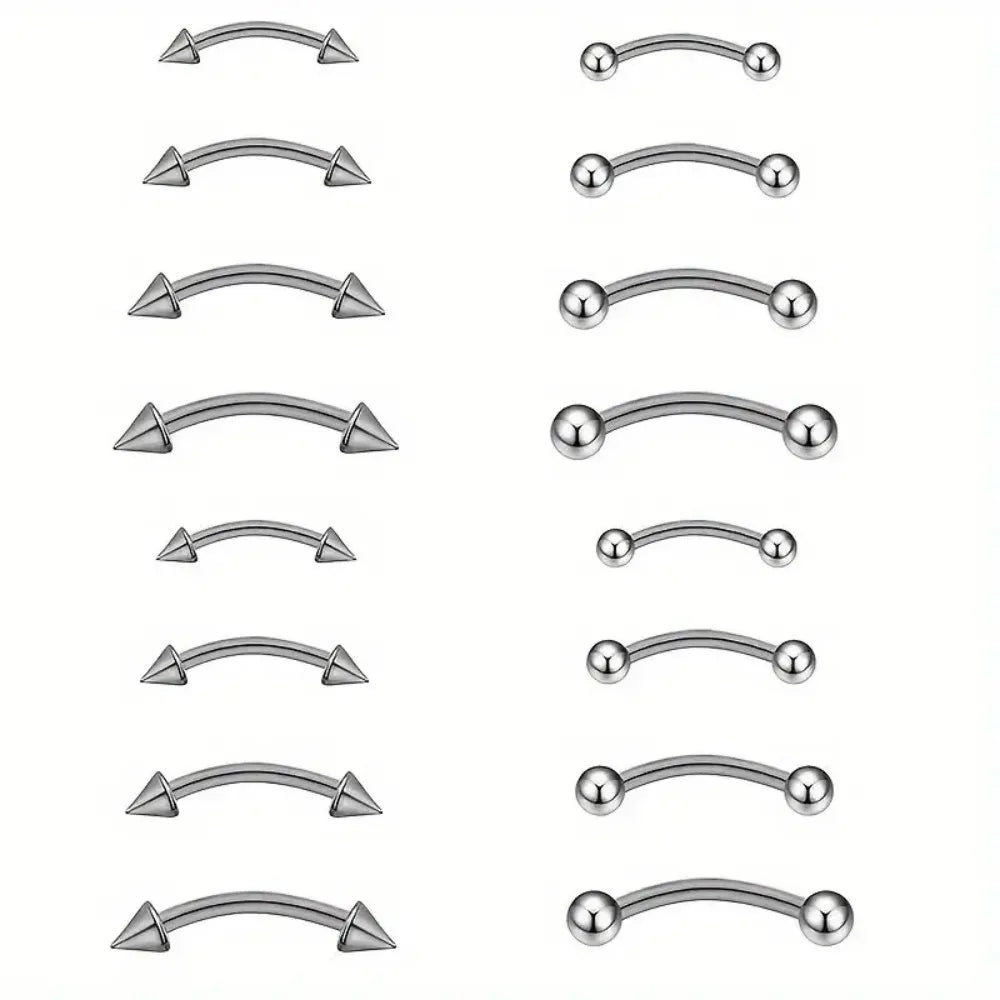 16-Piece Set Stainless Steel Multi-Size 6/8/10/12mm Curved Barbell Eyebrow Rings, Versatile Body Piercing Bar Spiral Ear Studs