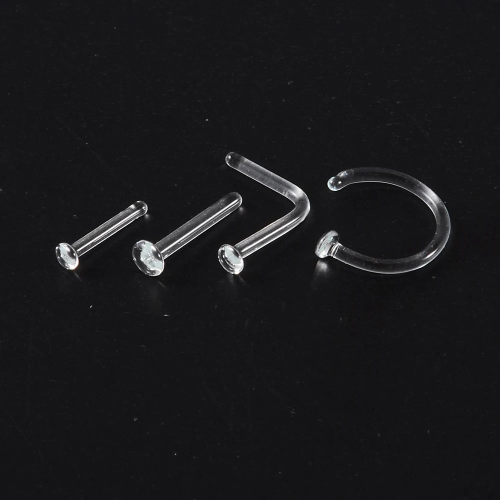 1PC Glass Nose Stud Transparent Glass Straight Nose Ring Retainer Holder Hoop Earrings Belly Ring Navel Piercing Jewelry