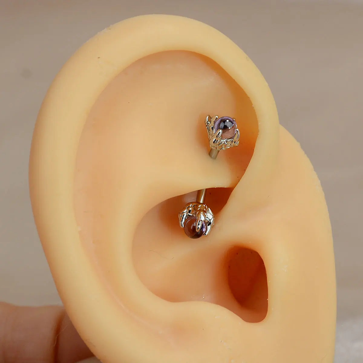 1PC Stainless Steel Curved Barbells Opal Eyebrow Rings Dragon Claw CZ Eyebrow Studs Ear Cartilage Tragus Body Piercing Jewelry
