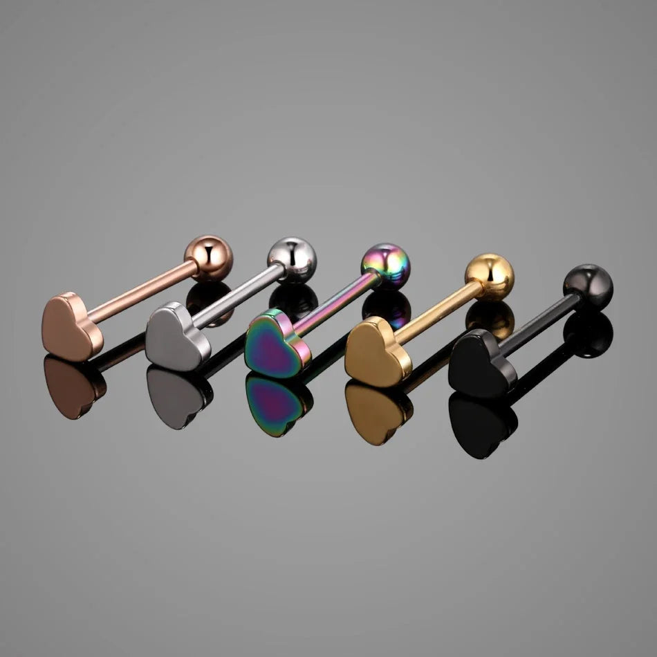 1PC Stainless Steel Heart Shaped Tongue Ring Barbell Tongue Piercing Cute Bar Ear Tragus Studs Labret Piercing Body Jewelry