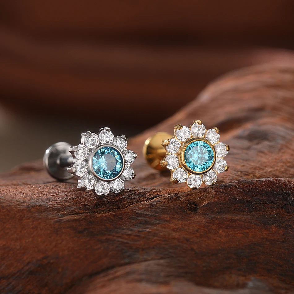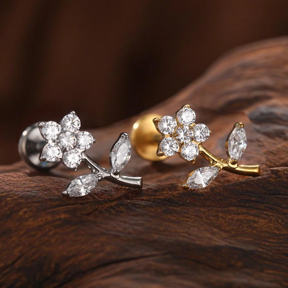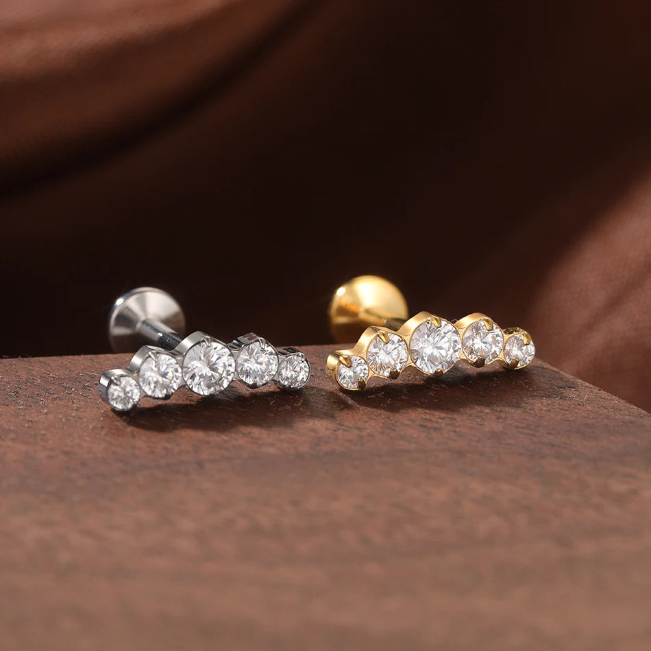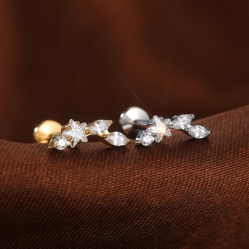 1PC Titanium Ear Cartilage Piercings Flat Back Stud Earring Internal Thread Butterfly Cross CZ Helix Tragus Piercing Jewelry 16G