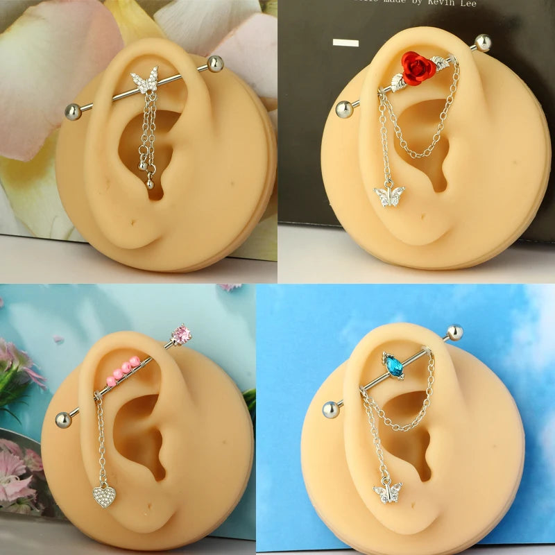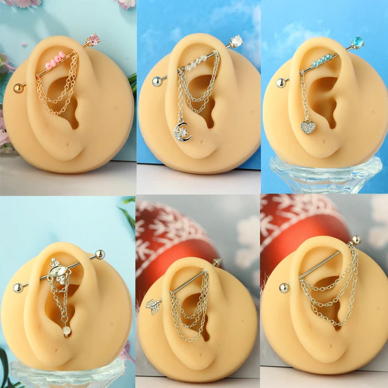 1PCS Stainless Steel dangling Industrial Piercing Barbell 14G Star Industrial Earring Tragus Cartilage Jewelry Industrial Rings