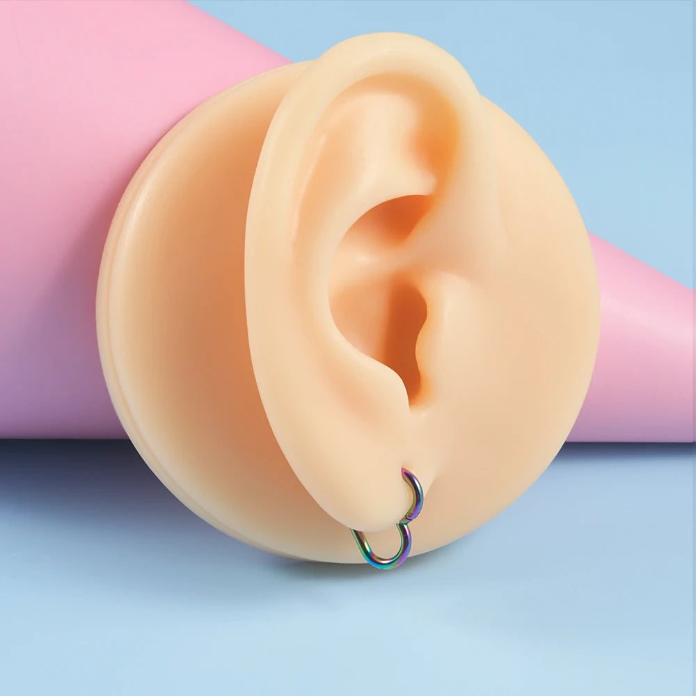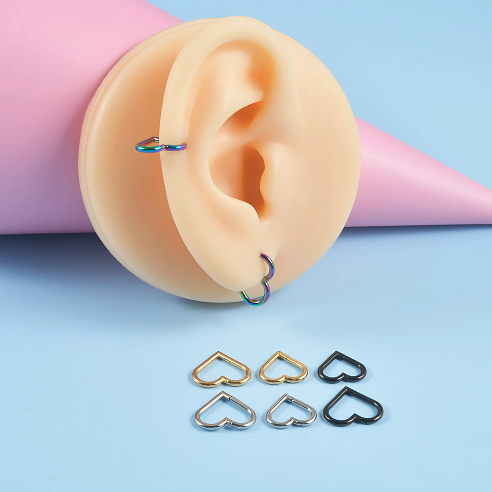 1pcs Stainless Steel Heart Shape Clicker Ear Tragus Cartilage Daith Helix Lobe Earrings Septum Nose Ring Body Piercing Jewelry