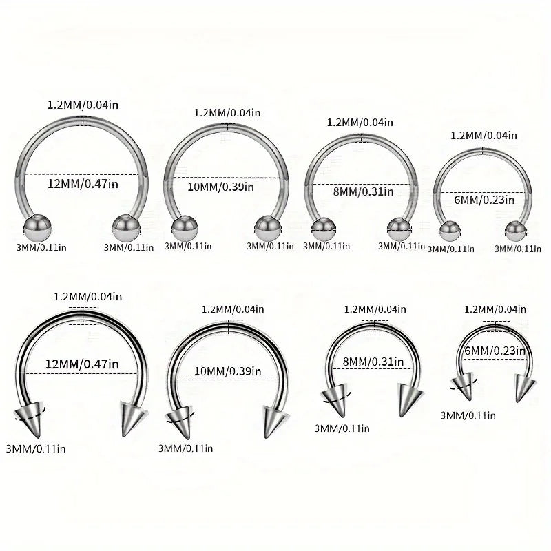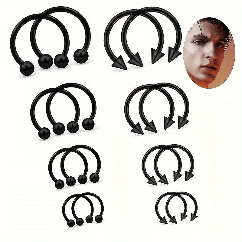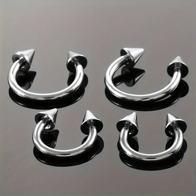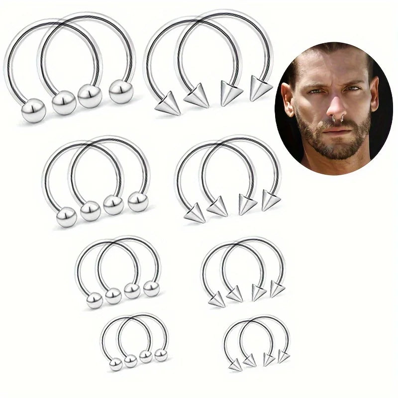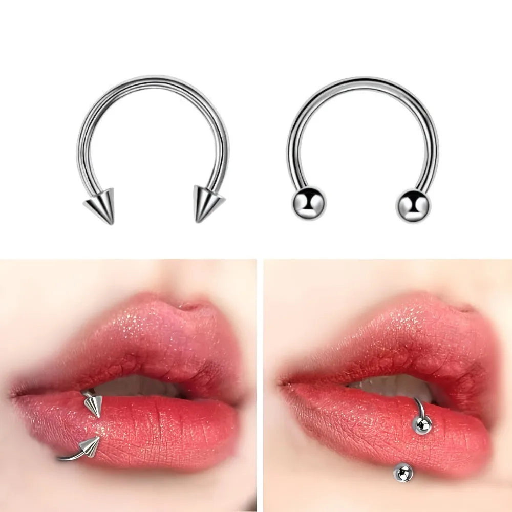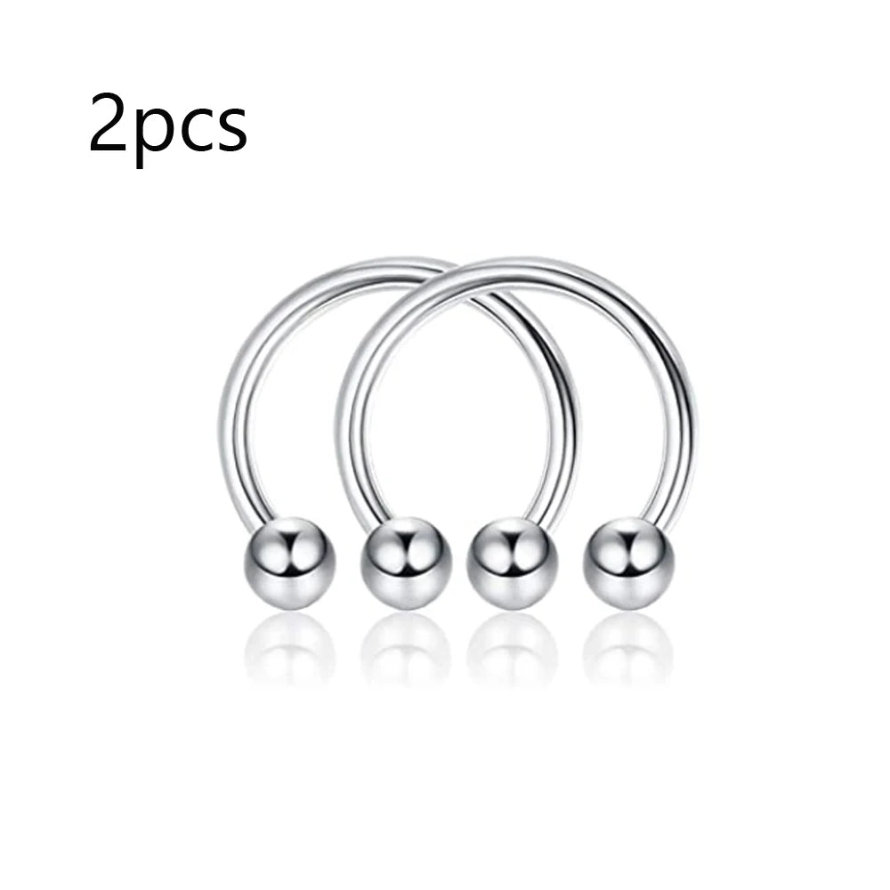 2Pcs Stainless Steel Horseshoe Barbell Nose Lip Rings With Balls Spikes Punk Body Piercing Jewelry Universal Fit Design