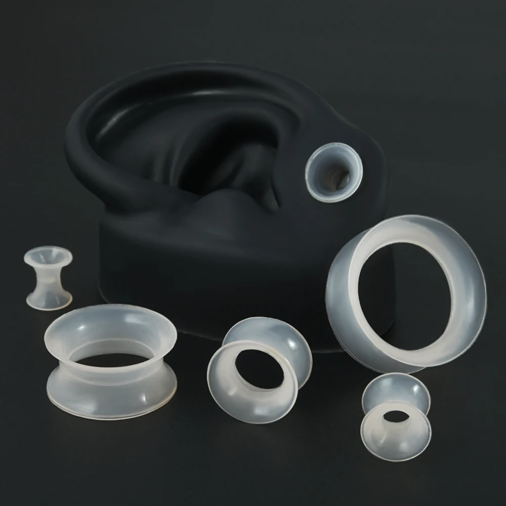 Pair Skin Thin Soft Flexible Ear Tunnels Double Flare Ear Plugs Flesh Tunnel Ear Gauge Expander Stretcher Earlets Earrings
