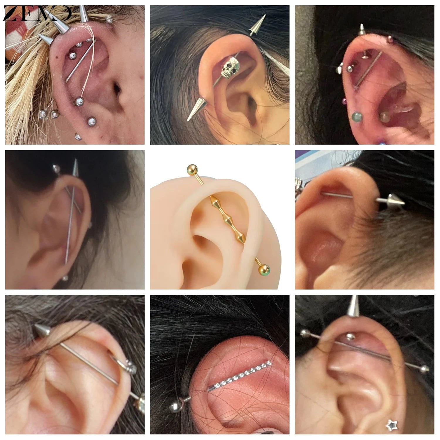 ZEMO 38MM Stainless Steel Industrial Barbell Earrings - Unisex, Multistyle